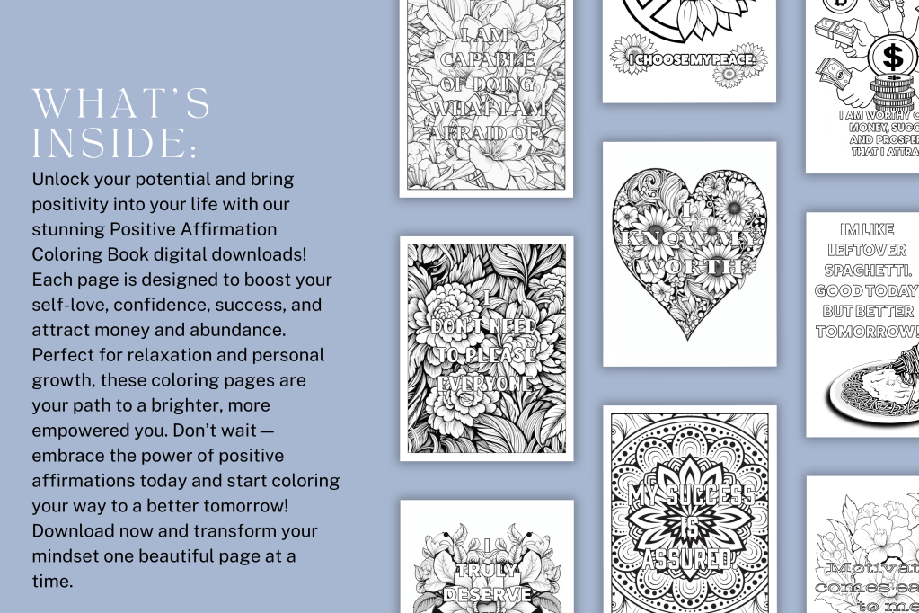 24 Positive Affirmation Coloring Pages: Each page features a unique affirmation to keep you inspired.